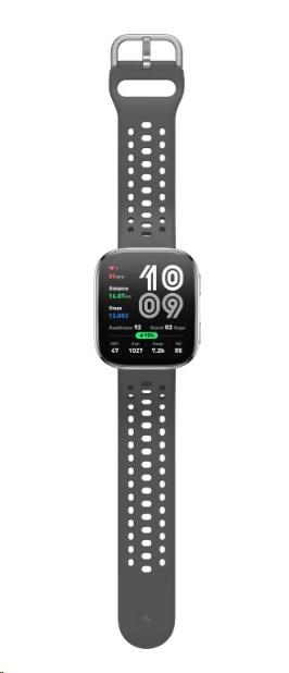 Chytré funkce:Předpověď počasí, Vlastní ciferník, Ovládání přehrávače hudby v mobilu, Obchod s aplikacemi; Kompatibilní OS:Android, iOS; Konektivita:Bluetooth; Materiál pouzdra:Hliník; Materiál řemínku:Silikon; Senzory a Hardware:GPS, Oxymetr, Mikrofon, Reproduktor; Tvar ciferníku:Hranatý; Způsob ovládání:Kombinované; Barva pouzdra:Stříbrná