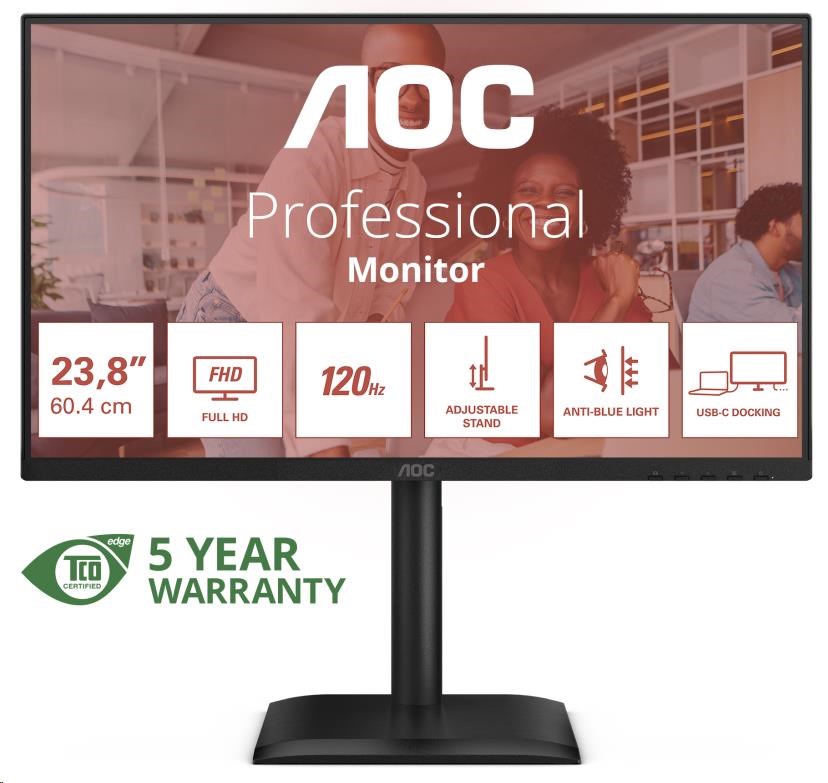 AOC MT 23,8" 24E4CV - 1920x1080,IPS,120Hz,1xHDMI,1xDP,USBhub,USB-C,PD,RJ45,Repro,Pivot