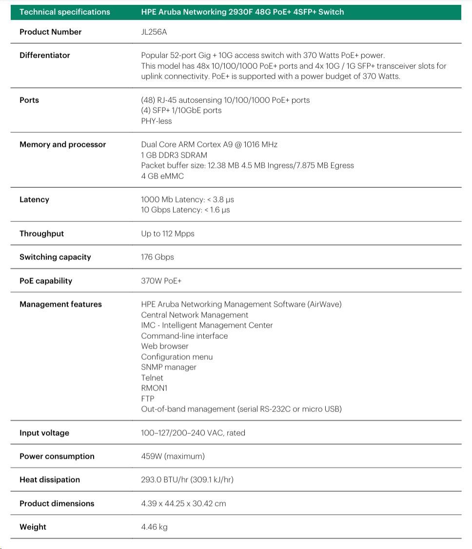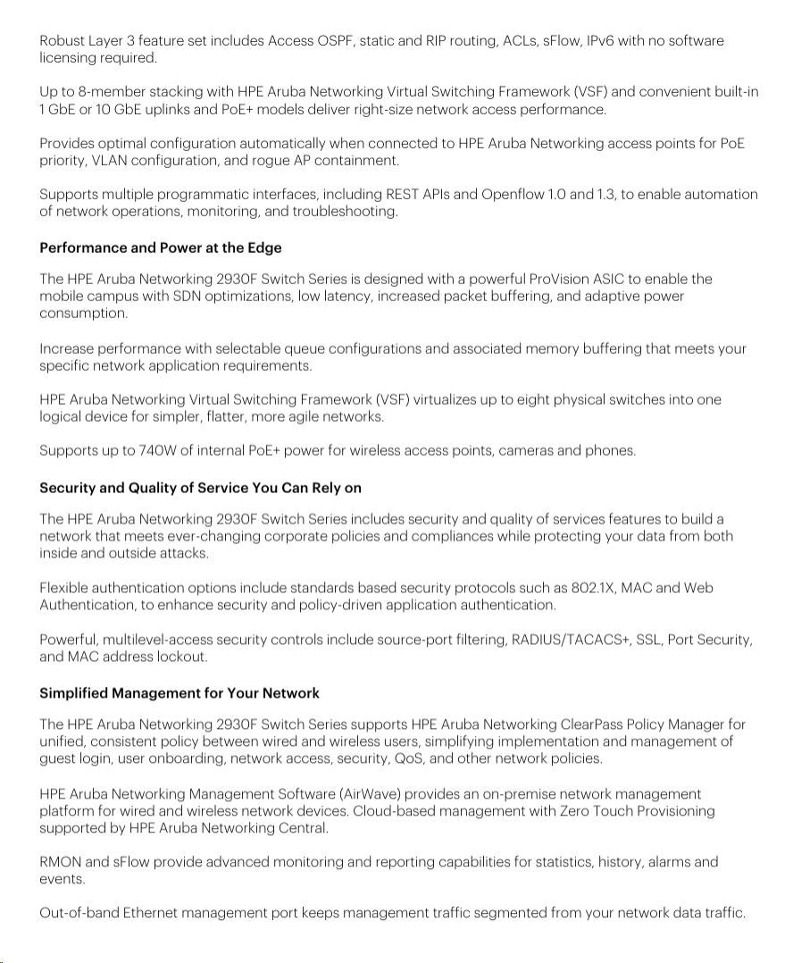 Aruba 2930F 48G PoE+ 4SFP+ Swch RENEW JL256A