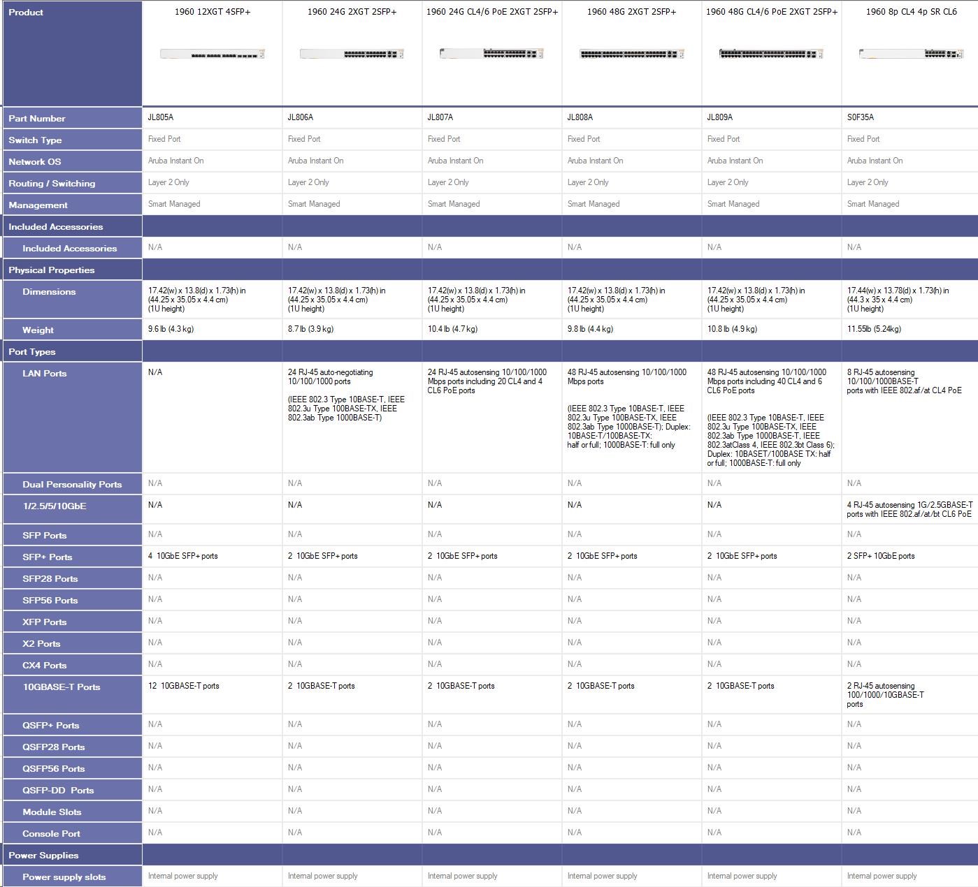 1960 Provedení:Desktop, Rack mounted 19"; Funkce:QoS (Quality of service), VLAN (virtual local area network), DHCP snooping, Stohovatelnost, L2, Web management/Smart switch, VPN; Technologie:Gigabit Ethernet + 10 GbE porty; Počet portů LAN:48; Počet portů LAN:48; Přenosová rychlost LAN (Mb/s):131; Přenosová rychlost LAN (Mb/s):131; Počet SFP portů:4