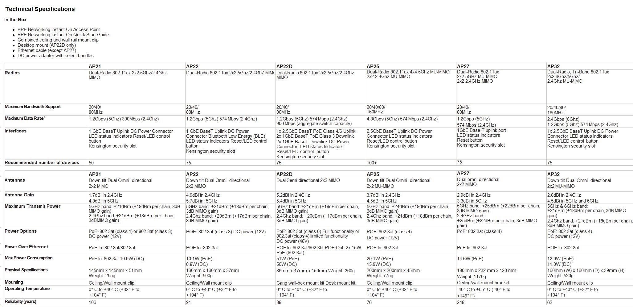 | Warranty | Instant On 2-year warranty |