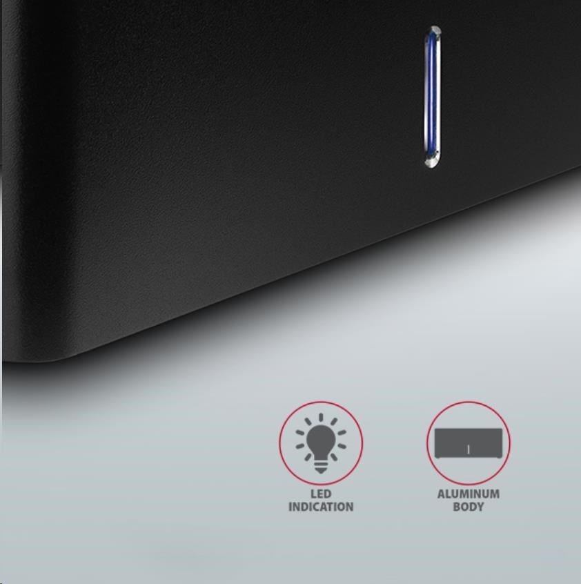 • Celková propustnost / přenosová rychlost boxu je dána použitým USB rozhraním (teor. 5 Gbit/s).