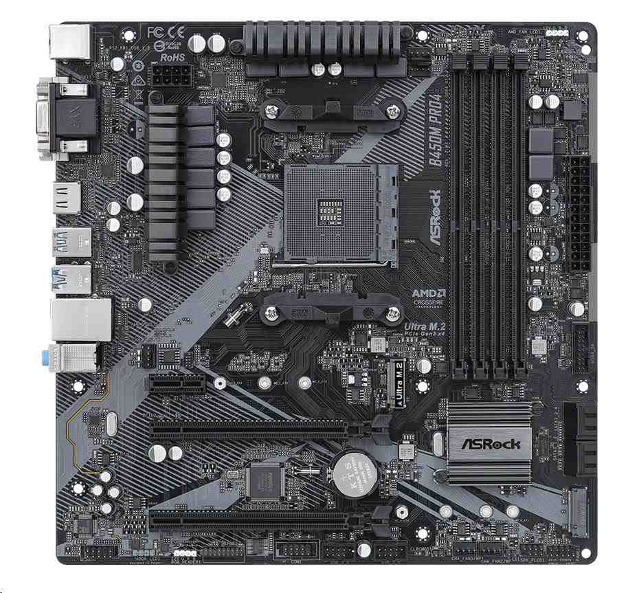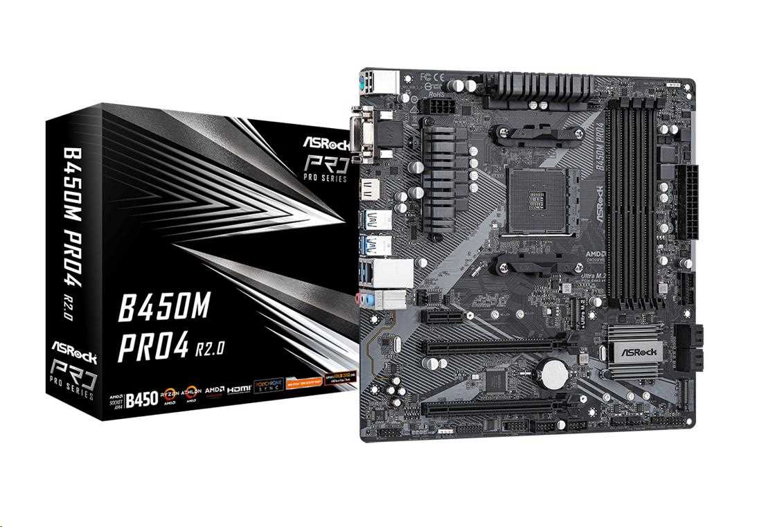 BAZAR - ASRock MB Sc AM4 B450M PRO4 R2.0, AMD B450, 4xDDR4, 1xHDMI, 1xDVI, 1xVGA, mATX - Po opravě (Bez příšlušenství)