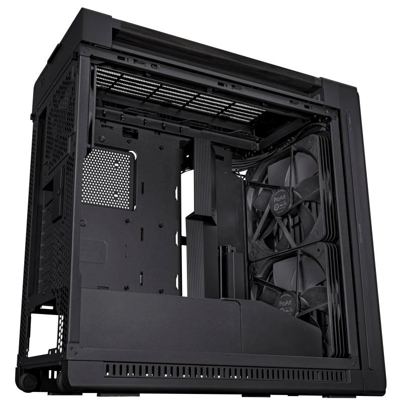 Počítačová skříň ProArt PA602 E-ATX, podpěra chladiče 420 mm, jeden 140 mm a dva 200 mm předinstalované systémové ventilátory, IR indikátor prachu na předním panelu, západka zámku napájení, montáž PCIe bez použití nářadí, podpora USB 20 Gb/s
