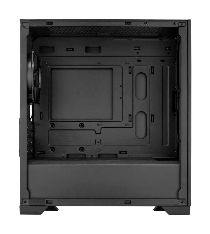 Provedení skříně:Mini Tower / micro ATX; Výkon zdroje (W):0; Barva skříně:Černá; Počet pozic 3.5" (HDD):1; Počet pozic 2.5" (SSD):1; Bočnice:Prosklená; Podsvícení:bez podsvícení; Vybavení PC skříně:Přední Audio panel, Přední USB panel, Průhledná bočnice