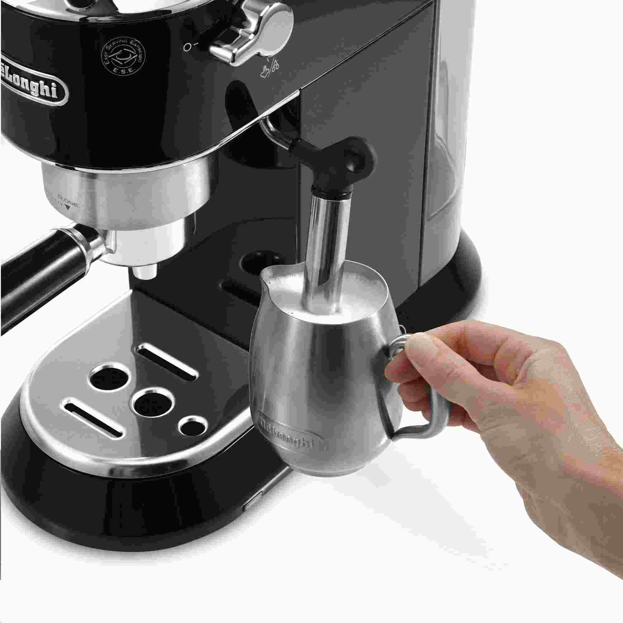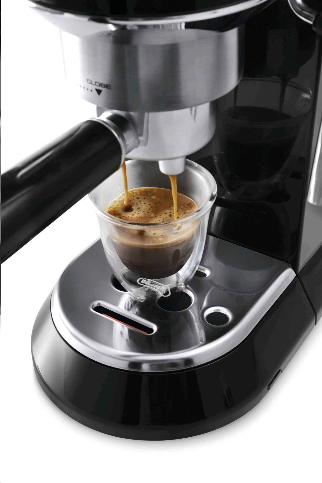 Vytvořte si ve vaší kuchyni malou kavárnu! Moderní design, zaoblené tvary a nevšední velikost pouhých 14,9 cm na šířku – to vše vás nadchne u elegantního Espressa DeLonghi. Díky velmi praktickým rozměrům si přístroj budete moci ponechat na kuchyňské lince a mít ho po ruce vždy, když dostanete chuť na šálek kávy. Celkový vzhled je navíc okořeněn kovovým tělem přístroje, prvky z chromu a profesionálním pákovým držákem na filtr. Jednoduše stvořený do každé kuchyně.