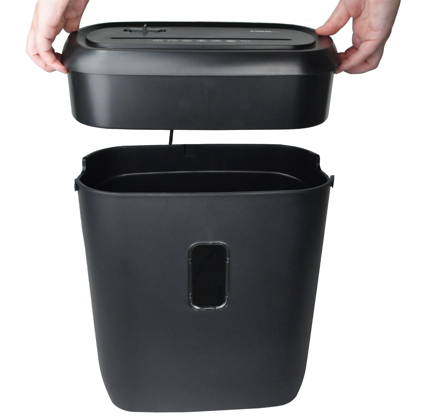 Výkonný křížový skartovač papíru s prostornou nádobou, ideální pro domácí kancelář a malé kanceláře.? Skartuje papír (včetně spon) a platební karty