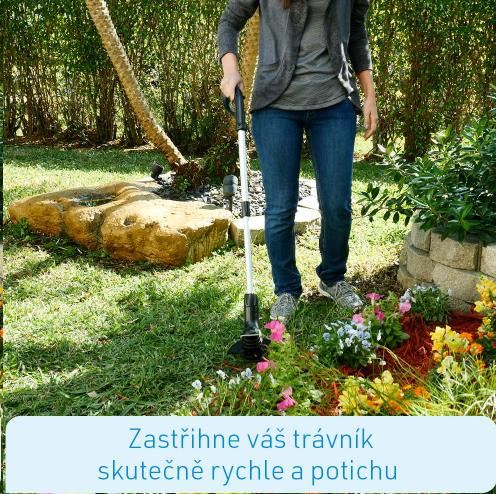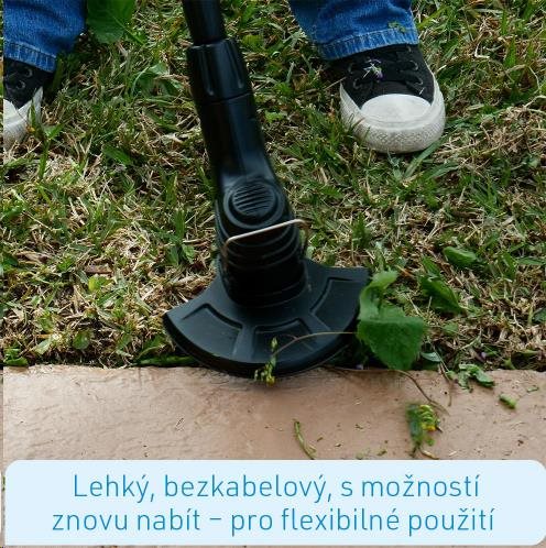 Ergonomická rukojeť se příjemně drží a usnadní vám nakládání s přístrojem. Vysouvací teleskopická tyč vám umožní přístroj přizpůsobit vaší výšce. Díky zabudovanému vodítku se z přístroje stane praktický zastřihovač rohů trávníku. Odteď můžete ve vaší zahradě zastřihovat rohy trávníku bez toho, abyste museli vytahovat další přístroje.