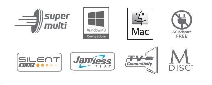 Typ mechaniky:Externí, externí USB 2.0; Druh optické mechaniky:DVD±R/±RW/CD-R/CD-RW/RAM; Rozhraní:USB 2.0