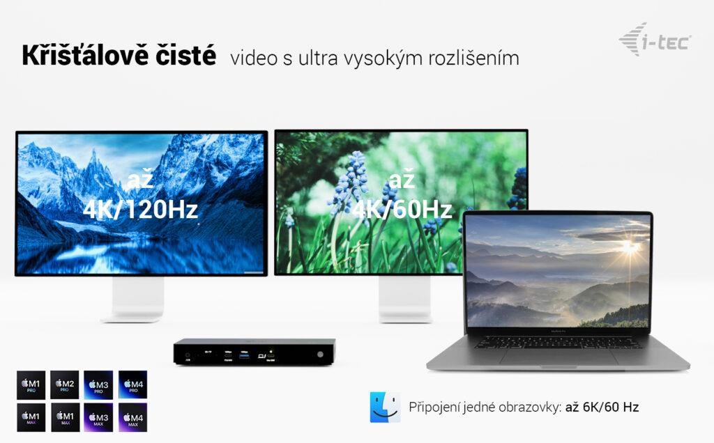 • 1 monitor – 1x TB4 nebo HDMI › až 8K/60Hznebo 4K/120Hz nebo 1440p/240Hz