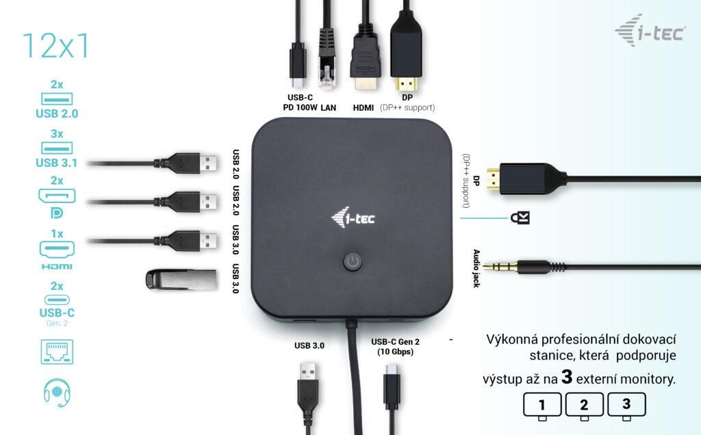 otestovany, plne funkcni produkt, kompletni, bez balenii-tec USB-C HDMI Dual DP Docking Station with Power Delivery 100 W + i-tec Universal Charger 100 W