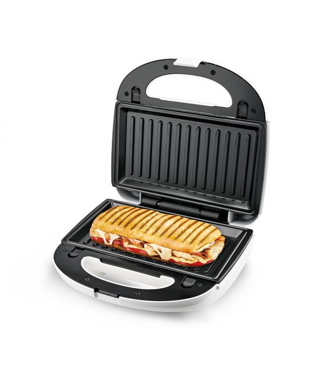 Pokud máte chuť na grilované kuře, cuketu nebo klobásu, sáhněte po grilovacích talířích a vložte je do toustovače. Když talíře s vloženým grilovacím dílem zaklopíte a zajistíte bezpečnostním zámkem, bude se vaší kuchyní v mžiku linout vůně letního grilování. Stejně dobře vám poslouží i pro opékání wrapu, tortilly nebo panini.