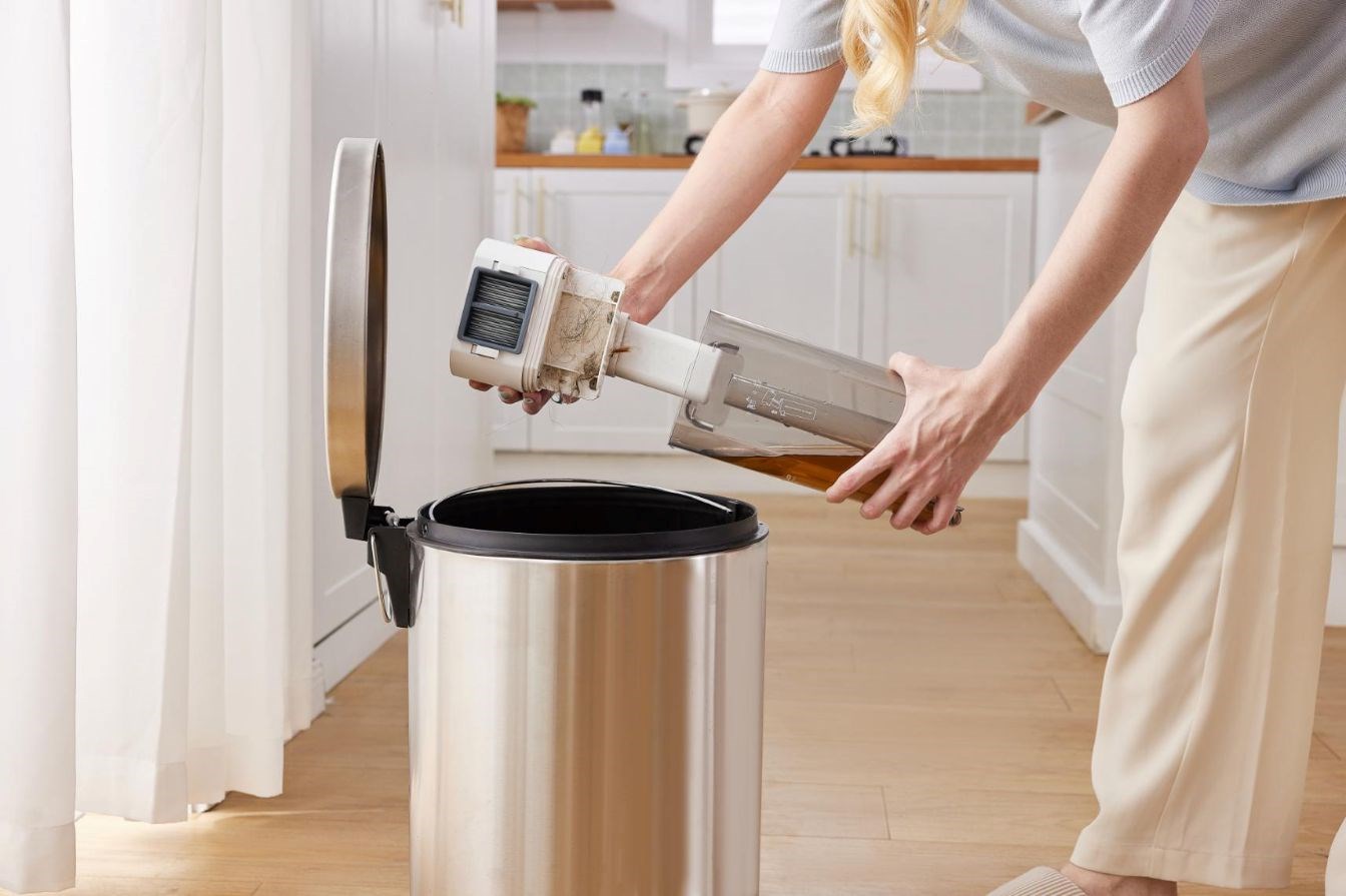 Po skončení úklidu stačí stisknout tlačítko a celý vnitřní systém se automaticky vyčistí. Od kartáče až po trubice – celé zařízení tak bude hygienicky čisté a připravené k dalšímu použití.