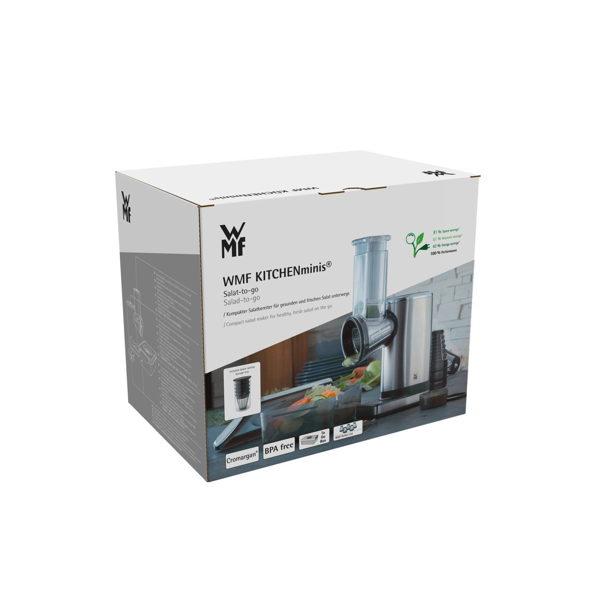 BAZAR - WMF KITCHENminis Salad-to-go struhadlo, 150 W, nerezová ocel, krájecí nástavce - Poškozený obal (Komplet)