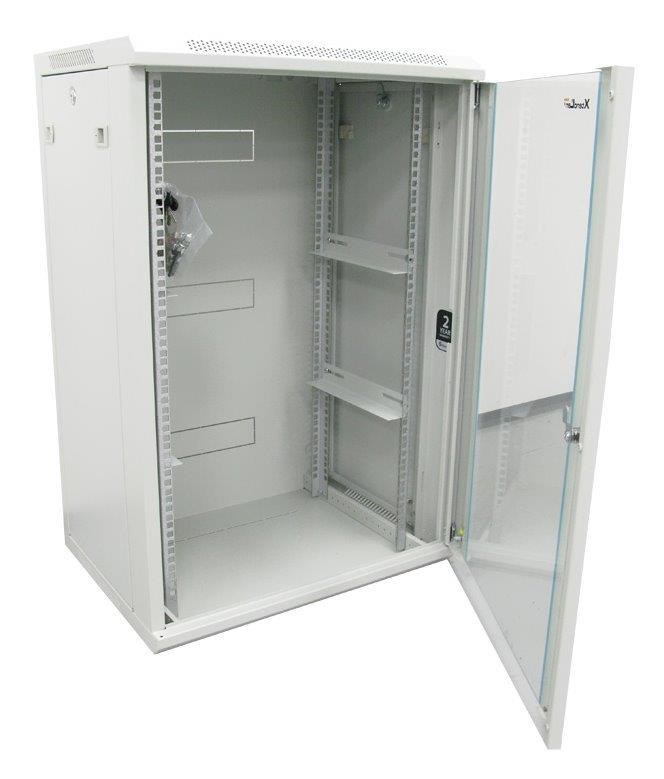 Univerzální jednodílné rozvaděče jsou určené pro montáž na zeď. Rozvaděče jsou výborně řemeslně zpracovány a mají elegantní vzhled.Jejich připevnění je snadné díky přibalenému patentovanému montážnímu panelu. Vyrobeny jsou z válcované oceli, nosné části jsou z oceli tloušťky 1,5 mm, ostatní z 1,2 mm ocelového plechu. Konstrukce dovoluje statickou zátěž 60 kg. Přední dveře jsou uzamykatelné. Boční panely jsou vybaveny západkami a jsou rukou odnímatelné. Je možné je vybavit zámkem, který se instaluje do připraveného otvoru. Dodává se s montážní sadou. Provedení: dveře - bezpečnostní kalené sklo, zaměnitelný směr otevírání, uzamykatelné zádní kryt - plný boční kryt - plný, snadno odnímatelný, možné vybavit zámkem horní kryt - perforovaný, s pozicemi pro dva ventilátory