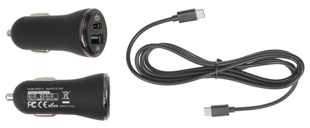 Cig-Plug Adapter, USB-A and USB-C interface, Quick Charger 3.0, 5V, 2.4A, incl.: USB-C to USB-C cable