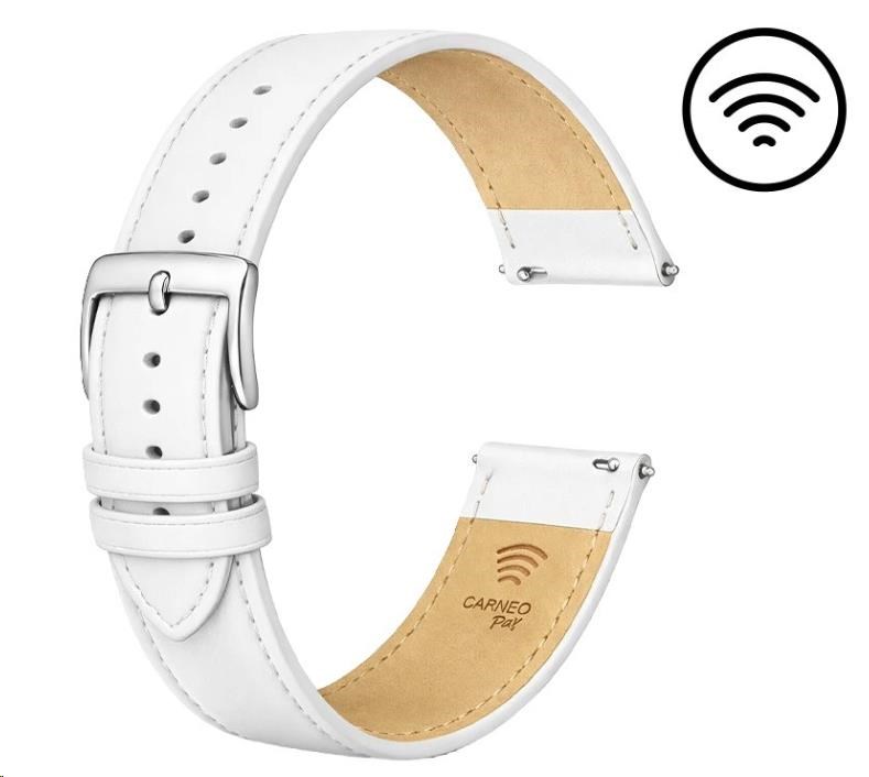 Carneo Pay, platební řemínek není jen praktickým platebním doplňkem, ale i stylovým koženým řemínkem pro hodinky. Je vyroben z kvalitní umělé kůže, odolné vůči opotřebení a zároveň je lehký a příjemný pro celodenní nošení. Jemná povrchová úprava dodává řemínku moderní a čistý vzhled, díky kterému se hodí ke sportovnímu i elegantnějšímu stylu. Je hypoalergenní a navržen tak, aby držel komfortně na zápěstí po celý den – od ranního tréninku až po večerní setkání. NFC čip je diskrétně integrován přímo v řemínku při uchycení k hodinkám, takže platíte jednoduše přiložením této části k terminálu..