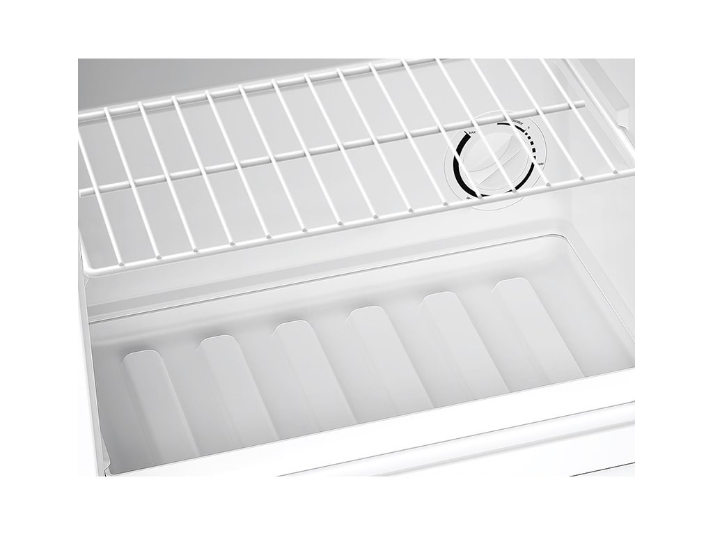 Při přepnutí z mrazáku na ledničku umí tento tác s vyššími okraji zachytit rozmrazenou vodu a zabrání tak vylití mimo minibar.