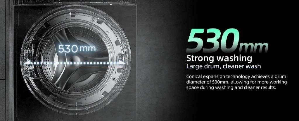 Aby pračka byla zabírala méně místa (hloubka jen 52 cm, hloubka těla pračky bez dvířek jen 48,7 cm), tak jsme buben zúžili a zvětšili jeho průměr. Pračka má tak dostatečný objem bubnu pro vyprání 8 kg prádla. Díky malému půdorysu se bez námahy vejde do nejmenších prostor, takže je ideální volbou pro malé domy, byty či univerzitní koleje.