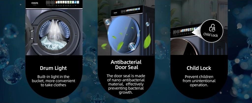 LED osvětlení bubnu pračky, nano - antibakteriální těsnění dvířek a dětská pojistka