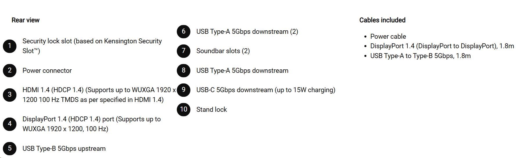 Rozlišení displeje:1920x1200; Úhlopříčka displeje ("):24; Výbava:VESA montáž, Pivot, Nastavitelná výška; HDMI počet:1; HDMI verze:1.4; DP počet:1; DP verze:1.4; USB počet:5; Doba odezvy (ms):8; Formát obrazovky:16:10; Typ panelu:IPS; Jas (cd/m2):300; Kontrast:1:1500; Povrchová úprava displeje:Matný; VESA rozměry:100x100; Standardní záruka (roky):3