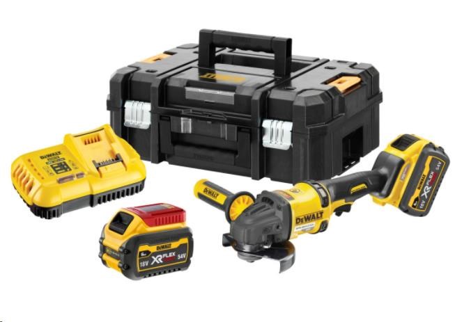 Tato Aku úhlová bruska DEWALT DCG418 se 2 akumulátory 54V 6,0 Ah, je nejvýkonnější z řady FlexVolt.Při použití baterie FlexVolt 9,0 Ah ekvivalent výkonu 2000W brusky.