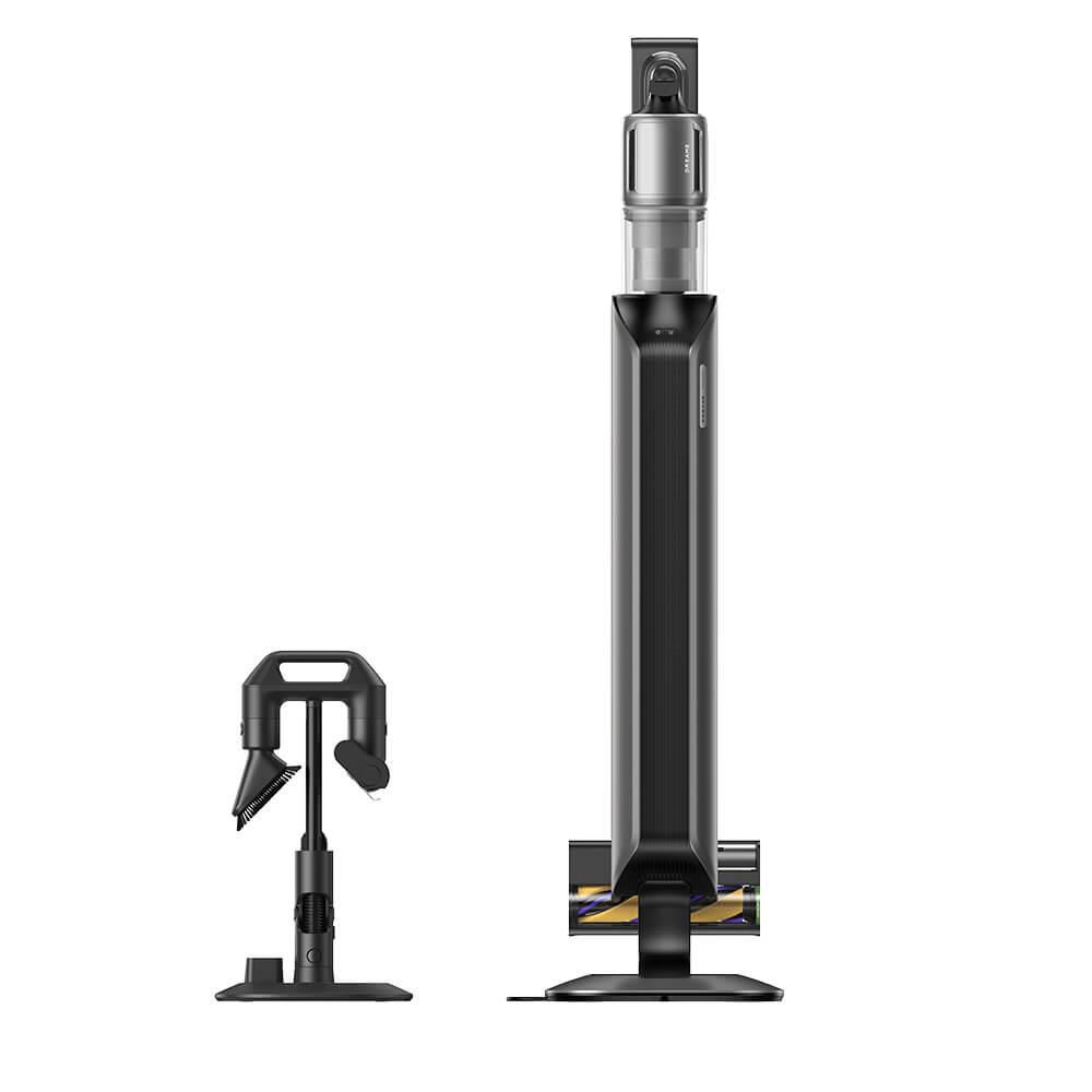 - Obsah balení: hlavní modul vysavače (1× Li-Ion 8× 3200 mAh), hlavní trubka (1×), vyprazdňovací stanice (1×), nástavec Omni-Brush s podsvícením (1×), malý kartáč s motorem (1×), rotující měkký kartáč (1×), měkký kartáč (1×), nástavec na odstranění chlupů domácích mazlíčků (1×), multifunkční nástavec (1×), flexibilní adaptér (1×), prodlužovací hadice (1×), náhradní sáček na prach (1×), držák příslušenství (1×), uživatelský manuál (1×)
