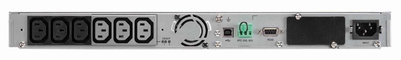 Počet výstupních zásuvek:6; Použití:Server; Provedení:Rackmount; Zdánlivý výkon VA:1150; Výška v Racku:1U; Topologie:Line-Interactive; Fáze (Vstup/Výstup):1:1; Komunikace:USB, RS232; Možnosti:Volitelně Management karta; Typ výstupu:IEC 13