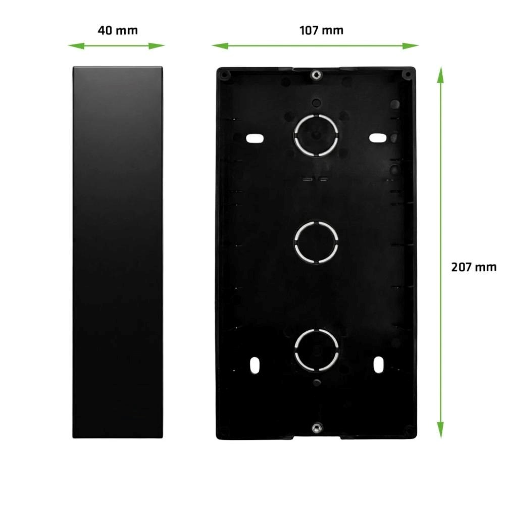 Venkovní panel lze instalovat dvěma způsoby podle typu objektu. Pro čisté zapuštěné řešení je k dispozici podomítková montáž s přiloženou instalační plastovou krabicí, která umožňuje elegantní integraci do fasády. Pokud preferujete jednodušší instalaci bez sekání, lze využít přisazenou montáž pomocí montážního boxu MSB, který je ideální například při dodatečné instalaci na hotovou zeď nebo plotový sloupek.