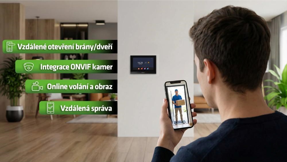 - Podpora systému: až 4 monitory, 2 venkovní jednotky, 2 IP kamery