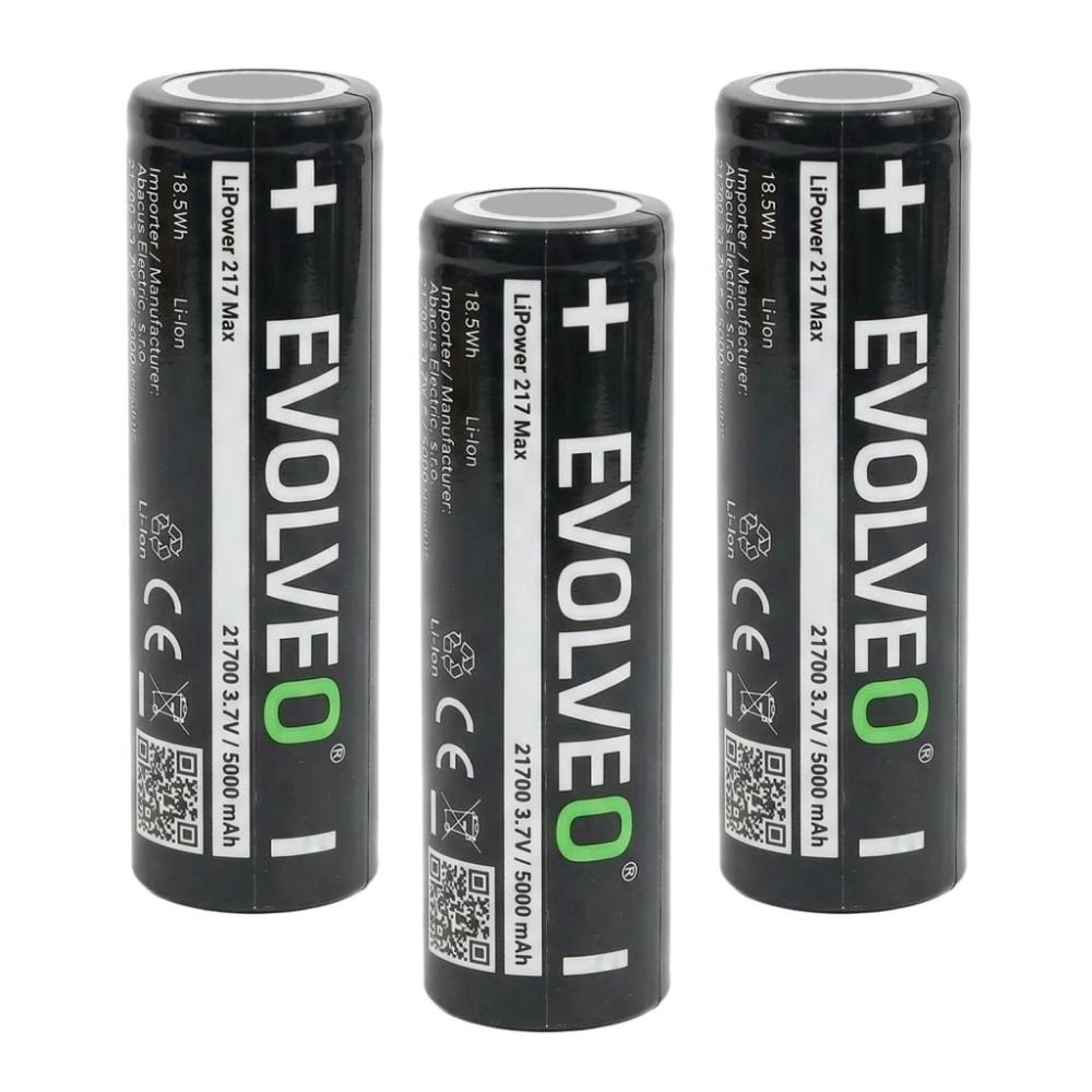 EVOLVEO LiPower 217 Max 5000 – Li-ion baterie 21700 (3.7 V / 5000 mAh) 3 ks