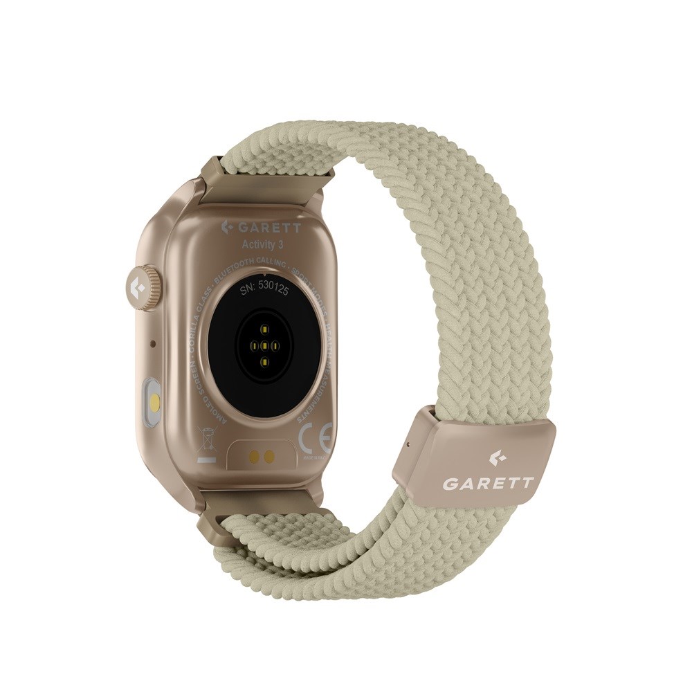1,96” AMOLED displej 410 × 502 px s funkcí Always On Display, ochranné sklo Gorilla Glass, Bluetooth hovory, monitoring srdečního tepu, krevního tlaku a SpO2, více než 100 sportovních režimů, voděodolnost IP68, baterie 340 mAh s výdrží až 7 dní, krokoměr, monitoring spánku, hlasový asistent, kompatibilita s Android a iOS (Garett Smart), silikonový a textilní řemínek v balení.