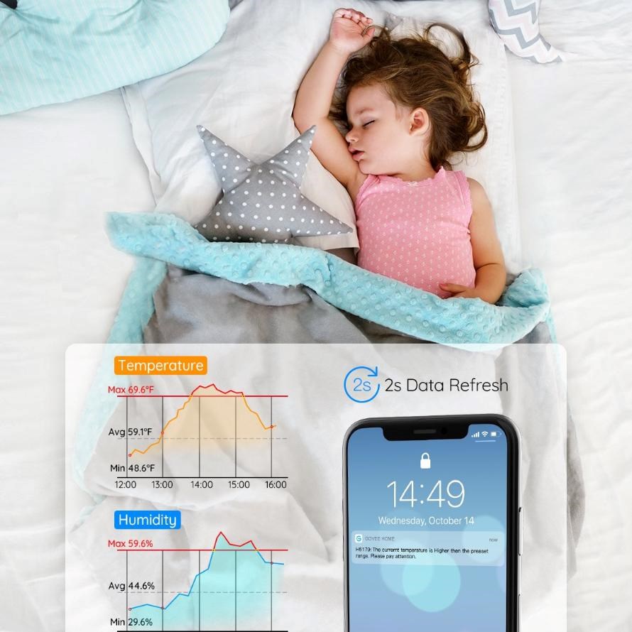 Vysoce přesný senzor zajišťuje spolehlivé a konzistentní měření teploty i vlhkosti v reálném čase, takže máte vždy k dispozici skutečně přesná data. Díky pokročilé senzorové technologii Govee jsou i malé změny prostředí okamžitě zaznamenány, což je ideální pro citlivé prostory jako terária, inkubátory, vinné sklepy nebo ložnice. Přesná data jsou základem pro správná rozhodnutí, vyšší komfort a zdravější prostředí každý den. Senzor pracuje v rozmezí -20 až 60 °C, vlhkosti 0-99 % a přesný je na 0,3 °C a 3% RH.