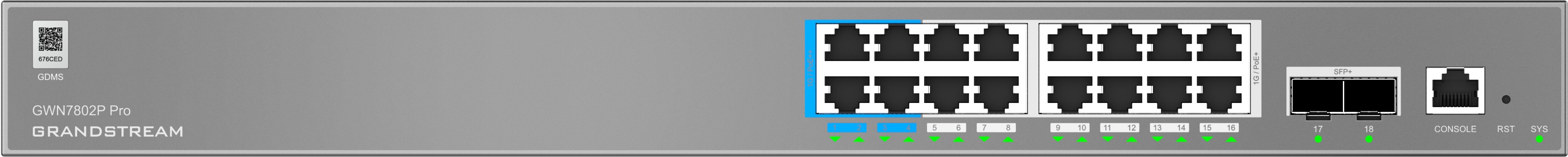 Grandstream GWN7802P Pro Layer 2++ Managed Network switch, 16x Gb RJ45 PoE