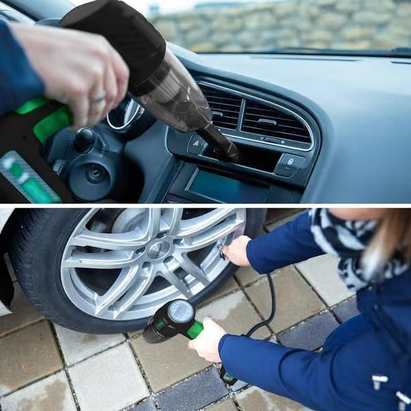 Akumulátorový ruční vysavač a vzduchový kompresor s bohatým příslušenstvím