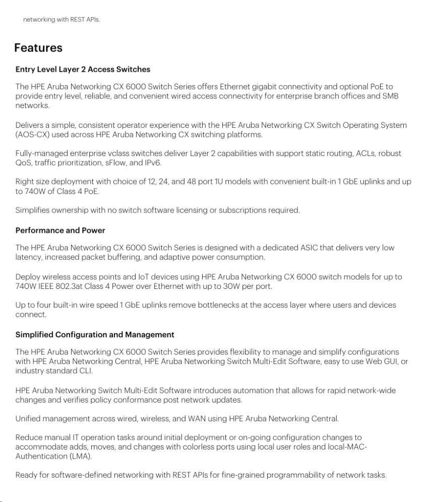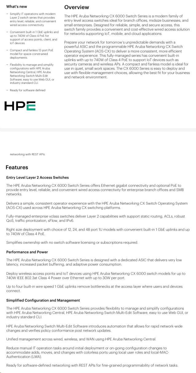 HPE Aruba Networking CX 6000 12G Class4 PoE 2G/2SFP 139W Switch