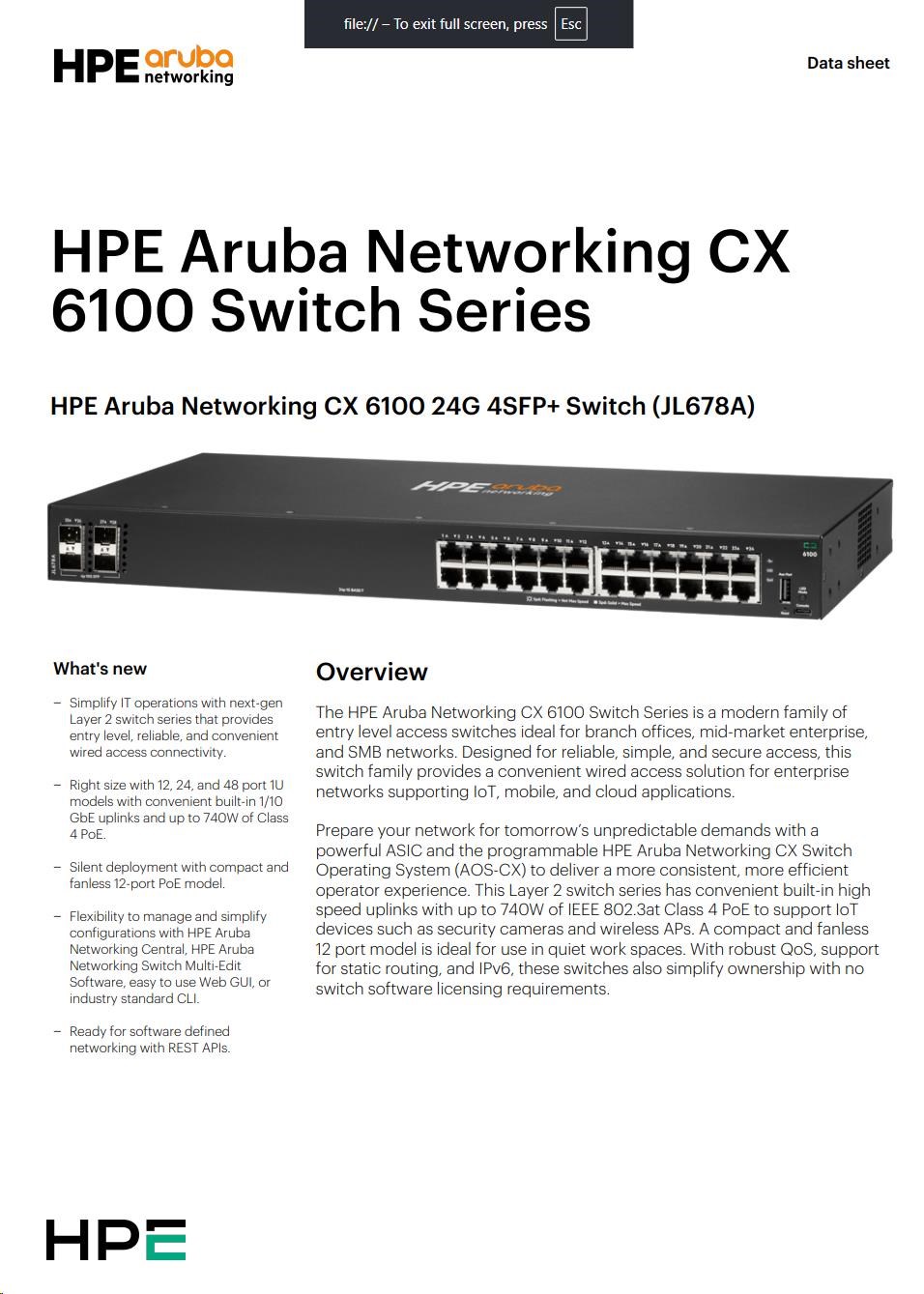 HPE Aruba Networking CX 6100 24G 4SFP+ Switch JL678A RENEW