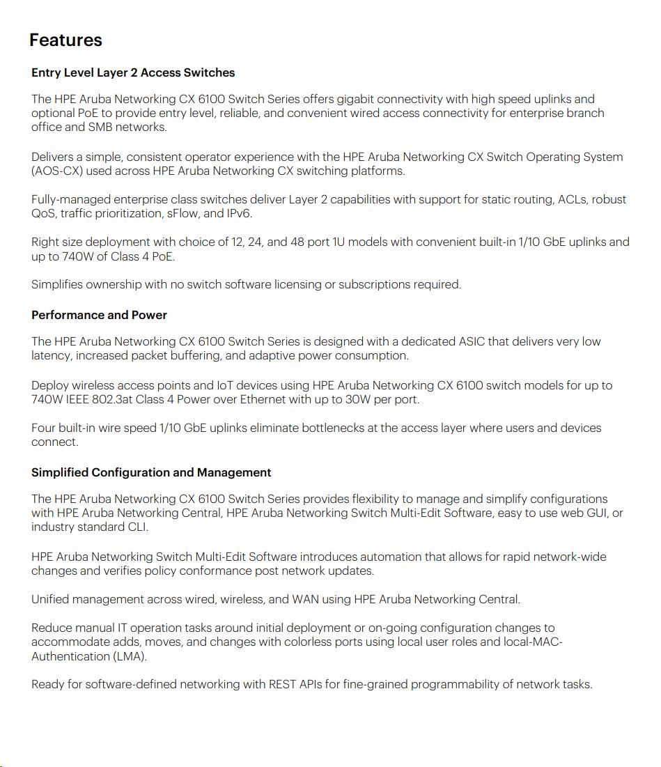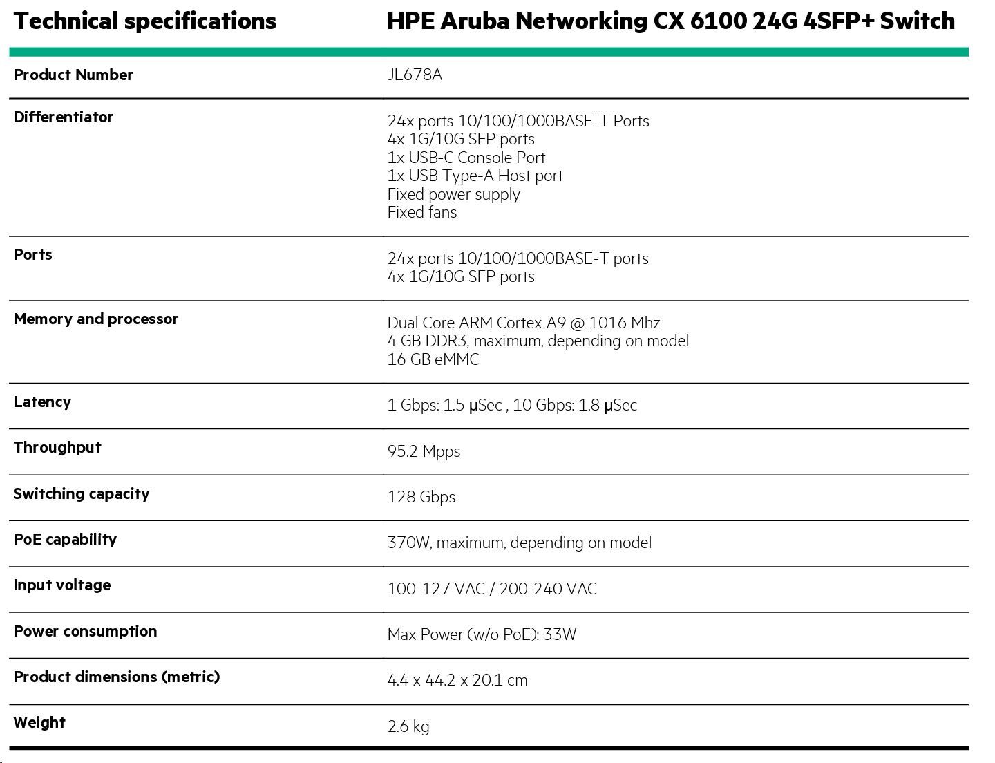 HPE Aruba Networking CX 6100 24G 4SFP+ Switch