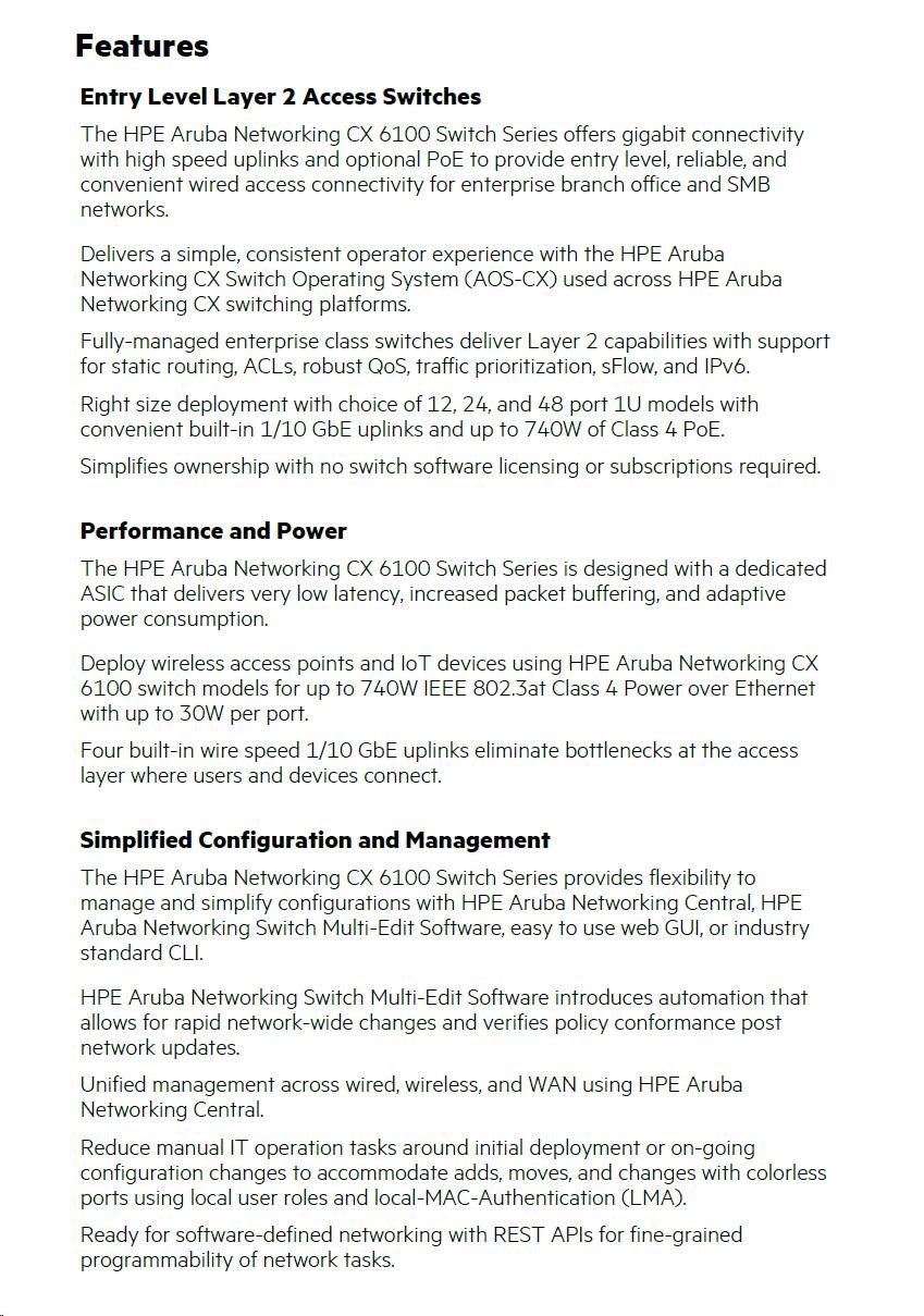 HPE Aruba Networking CX 6100 48G 4SFP+ Switch