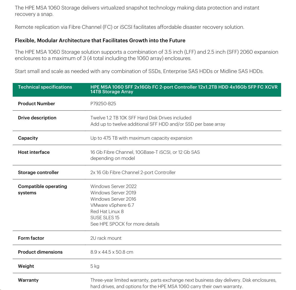 HPE MSA 1060 SFF 2x16Gb FC 2p Array