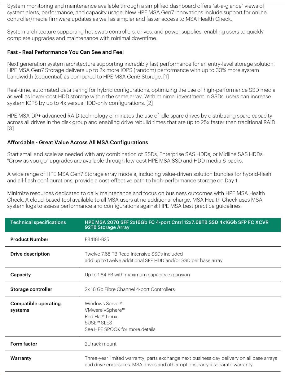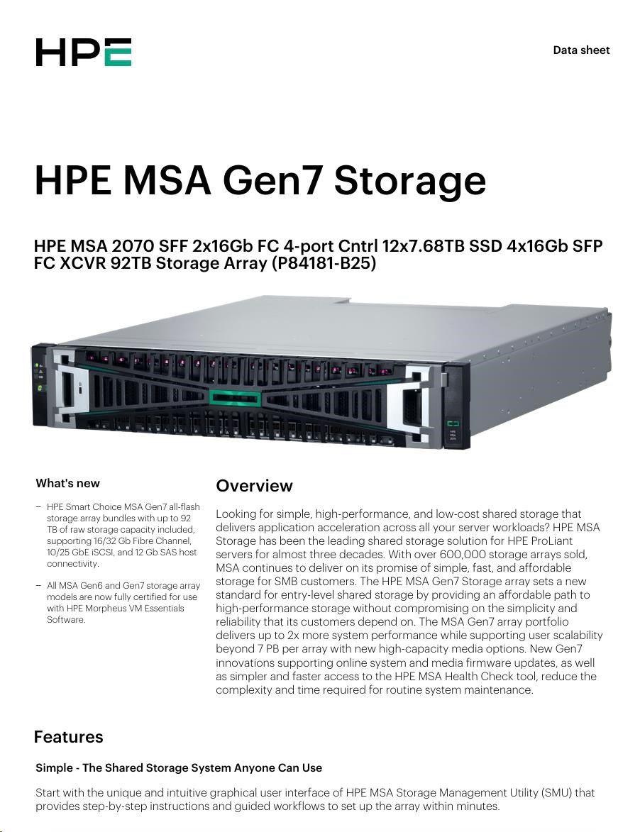 HPE MSA 2070 SFF 2x16Gb FC 4-port Controller 12x7.68TB SSD 4x16Gb SFP FC XCVR 92TB Storage Array Smart Choice