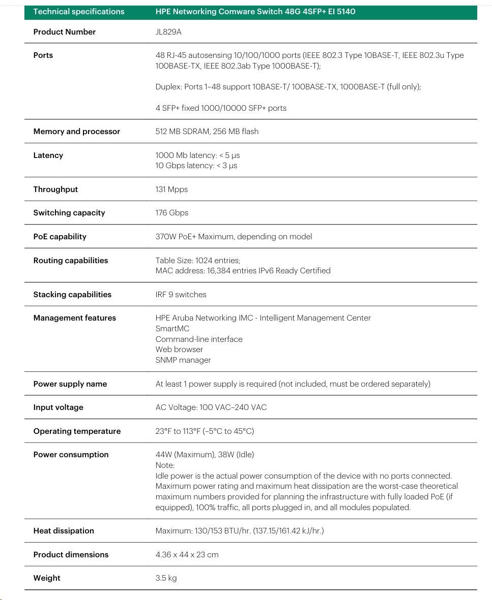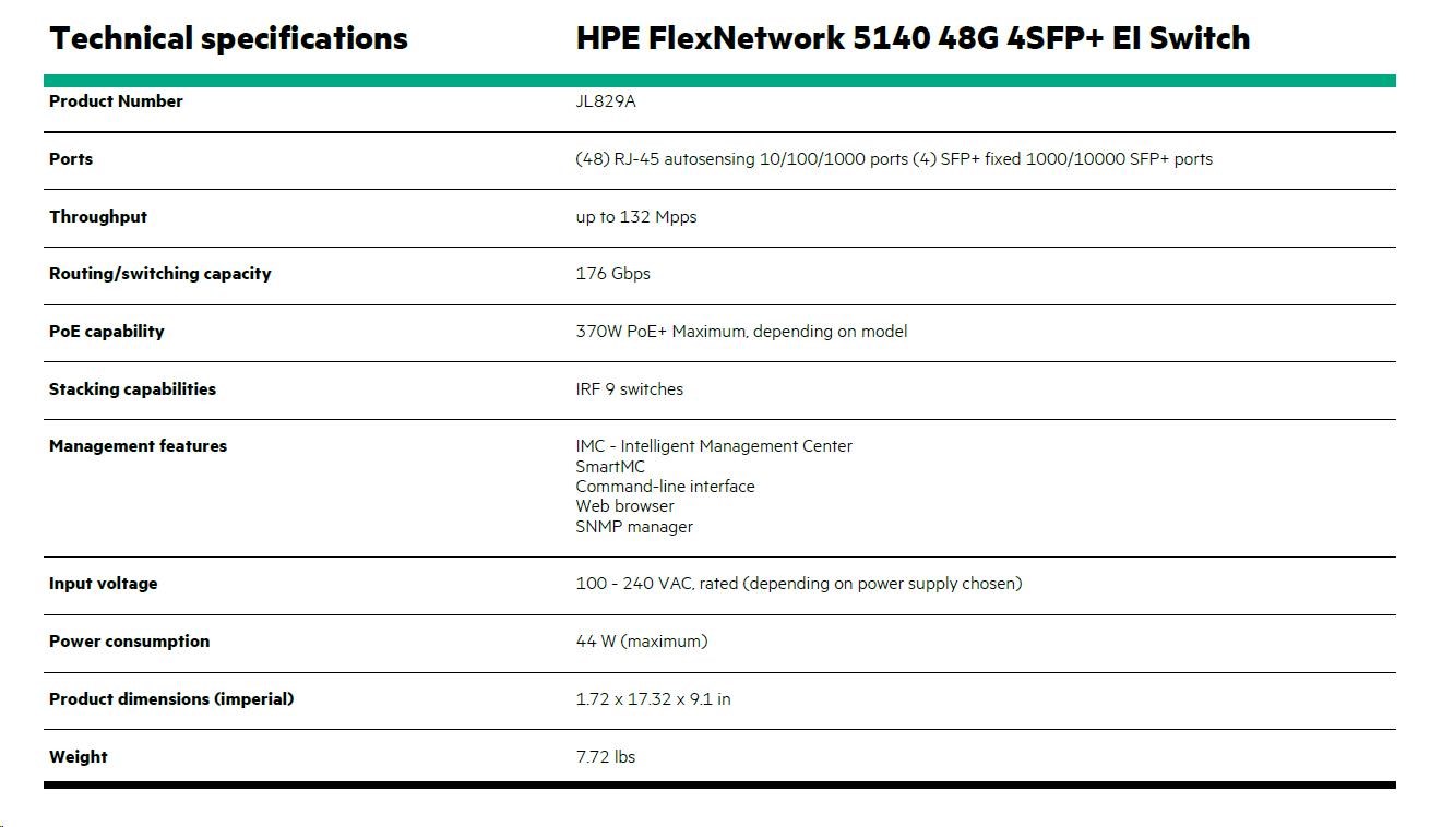 HPE FlexNetwork 5140 48G 4SFP+ EI Switch (JL829A) |