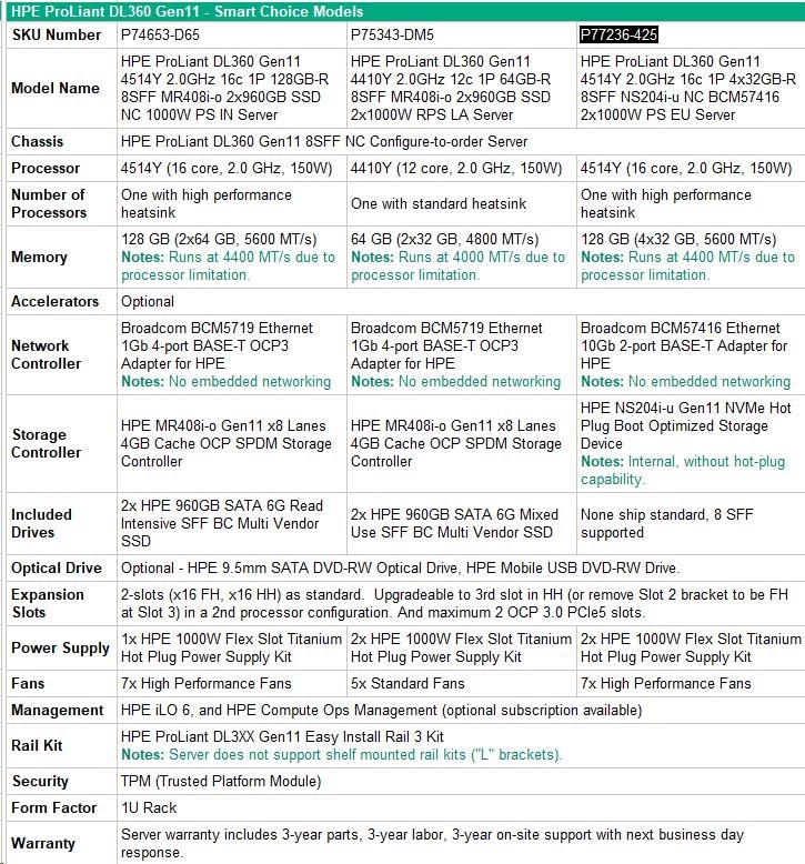 HPE PL DL360g11 4514Y (2.0G/16C) 4x32G (p64706) NS204i-u 2x1000W 8SFF 2x10G-T Smart Choice