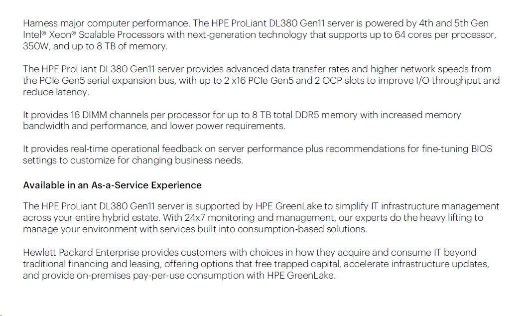 HPE PL DL380g11 4510 (2.4G/12C) 2x32G (p64706) 1x7.68TB 2x1000W 8SFF NVMe EmbSATAcontr 4p1G HPfans Smart Choice