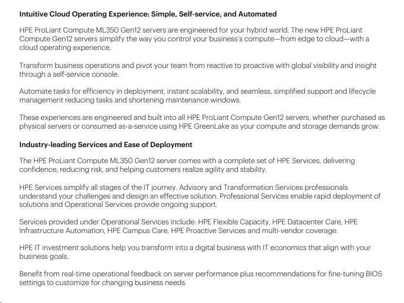 HPE PL ML350 Gen12 6505P (2.2/12C) 1x64G (P69728) 2x960G MR408i-o 8SFF 2x1000W 1GbE NBD333 Smart Choice
