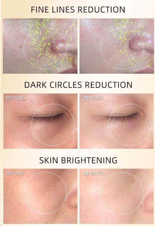 - Klinicky prokázaná redukce vrásek kolem očí o 24,56% a tmavých kruhů o 29,41% za 28 dní.