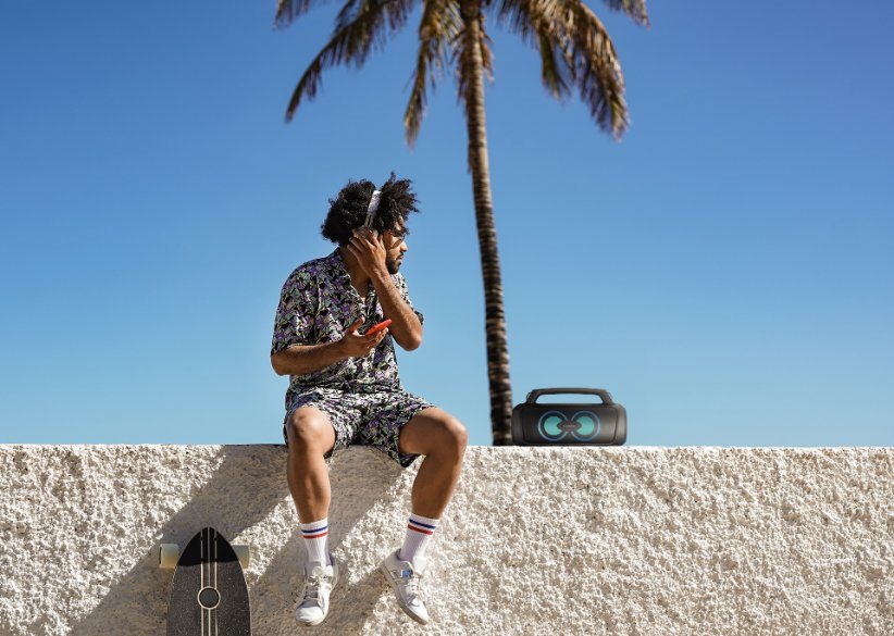 Reproduktor lze propojit se zařízením prostřednictvím nejmodernějšího Bluetooth 5.3, které umožňuje bezchybný přenos až na vzdálenost 18 metrů.