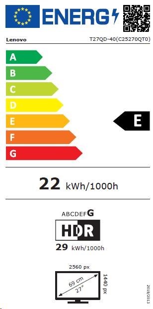 LENOVO LCD ThinkVision T27Q-40- 27",IPS,mat,16:9,2560x1440,178/178,4/6ms,350cd/m2,1500:1,CAM,DP,HDMI,PIVOT,VESA,3Y