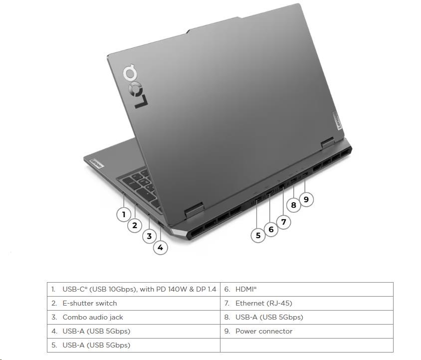 Standartné porty | 1x USB-A (USB 5Gbps / USB 3.2 Gen 1) 1x USB-A (USB 5Gbps / USB 3.2 Gen 1), Always On 2x USB-C® (Thunderbolt™ 4 / USB4® 40Gbps), with USB PD 3.0 and DisplayPort™ 2.1 1x HDMI® 2.1, up to 4K/60Hz 1x Headphone / microphone combo jack (3.5mm) |