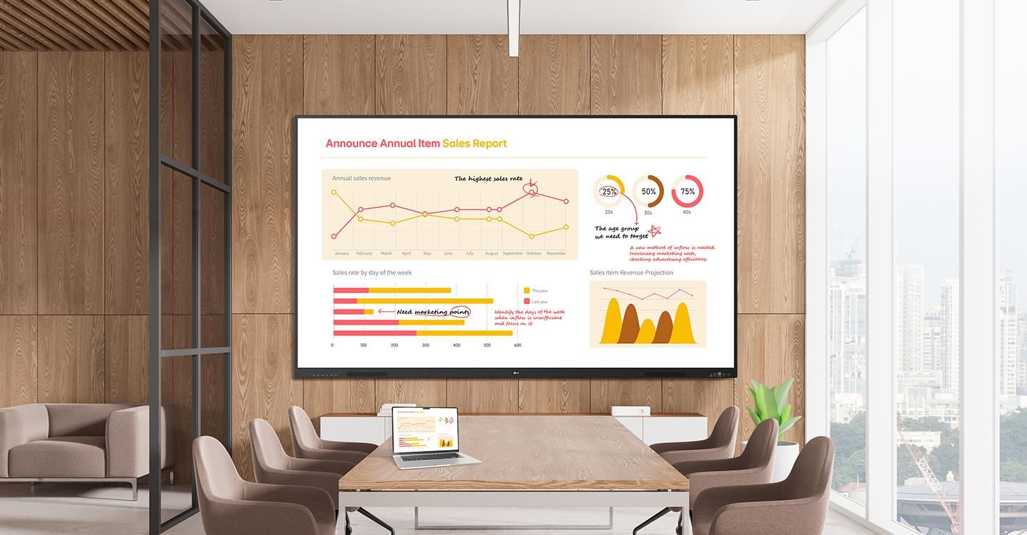 LG CreateBoard Core poskytuje realistický dotykový zážitek s podporou 4K rozlišení. Umožňuje uživatelům plynule psát a zajišťuje, že je každý detail ostrý a jasný.